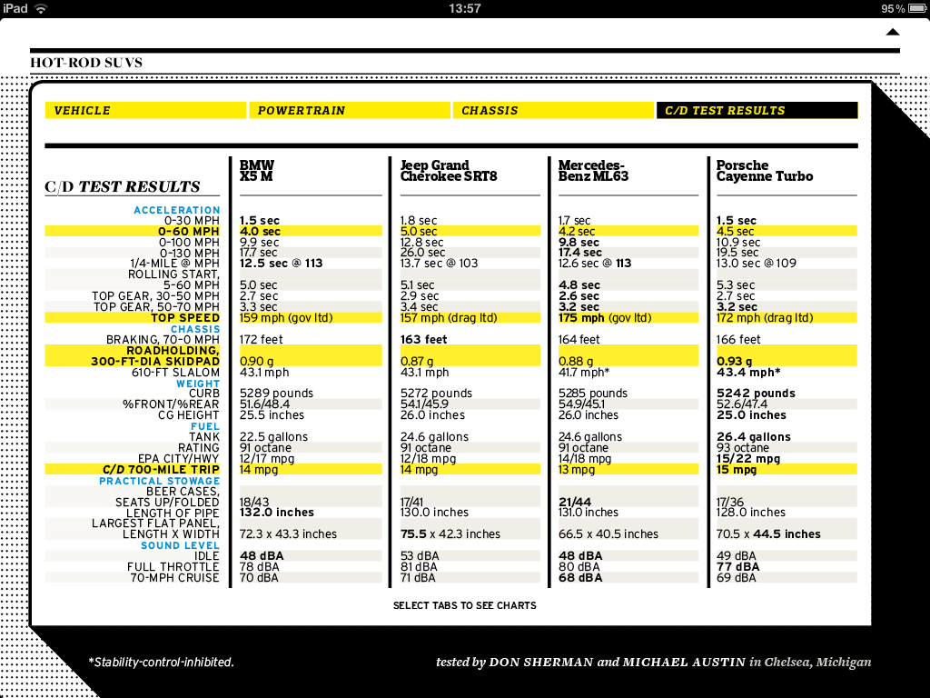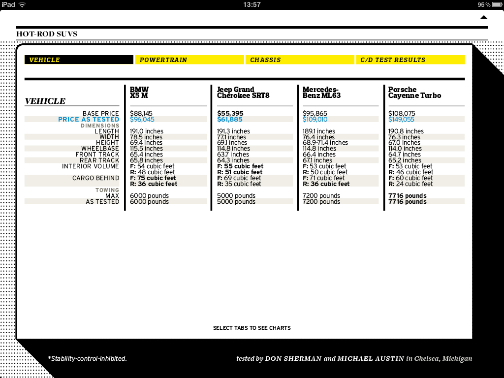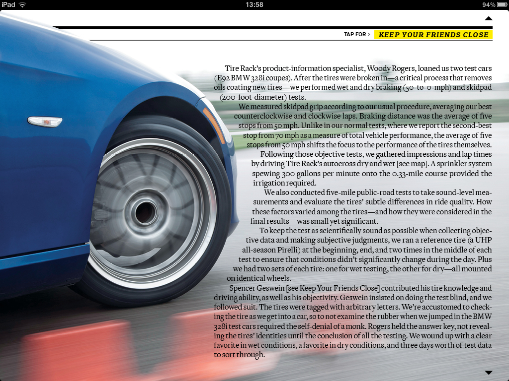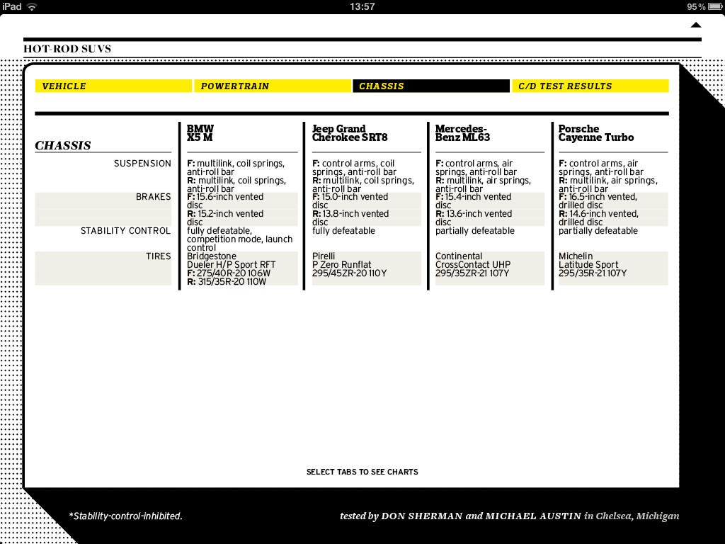 The print edition had three or more designers working on its layout and production. The iPad edition was the sole responsibility of Matthew J. Richards. More content needed to fit into less space. Photography, video, complex information graphics and charts, audio, embedded media from external sources, animations and copy needed to fit and needed to look good in both vertical and horizontal orientations.