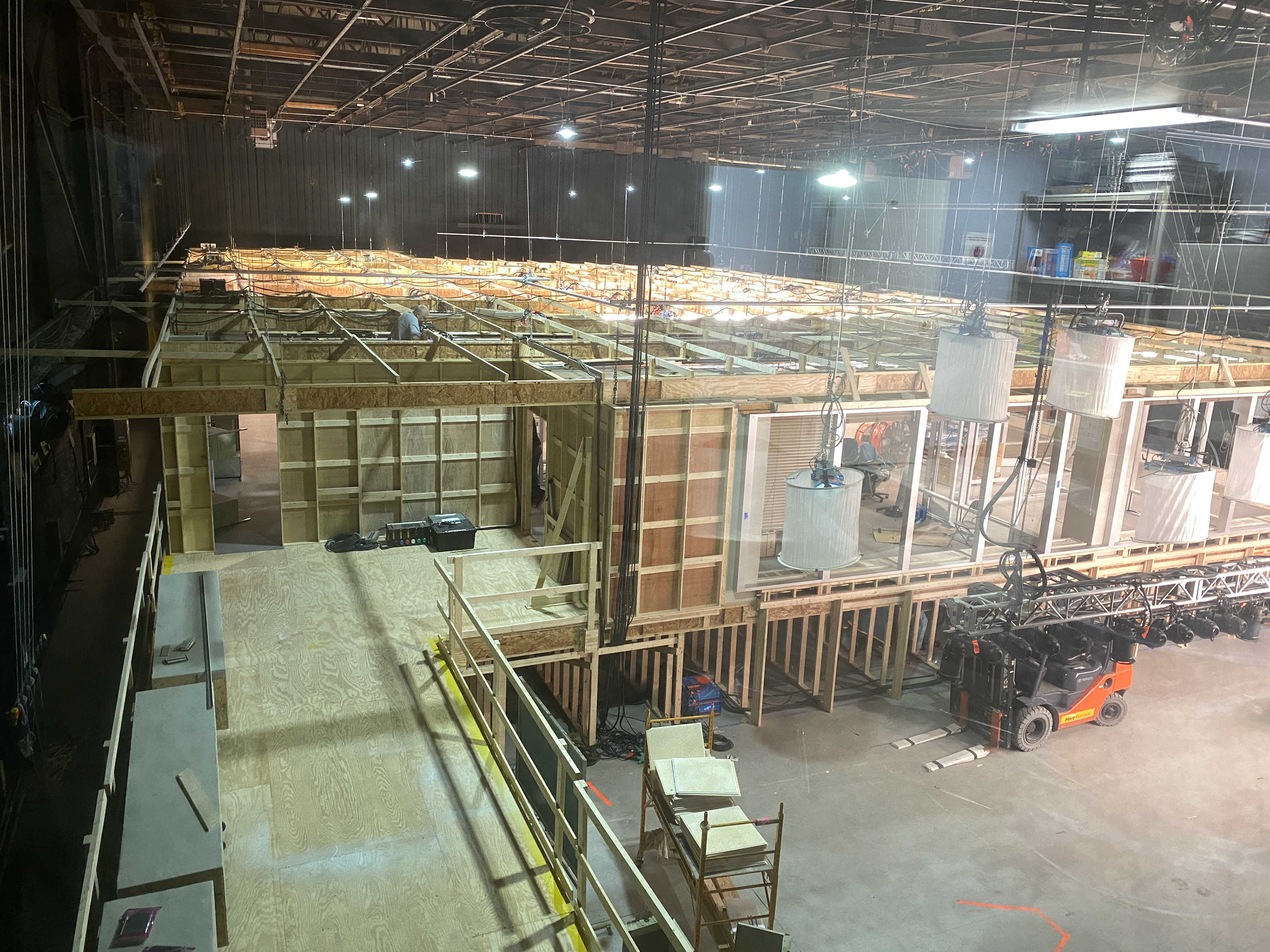 Chicago Sun Times, circa 1993, stage in progress. We created the newsroom and archive, the archive being what I did the most background and prop graphics for.
